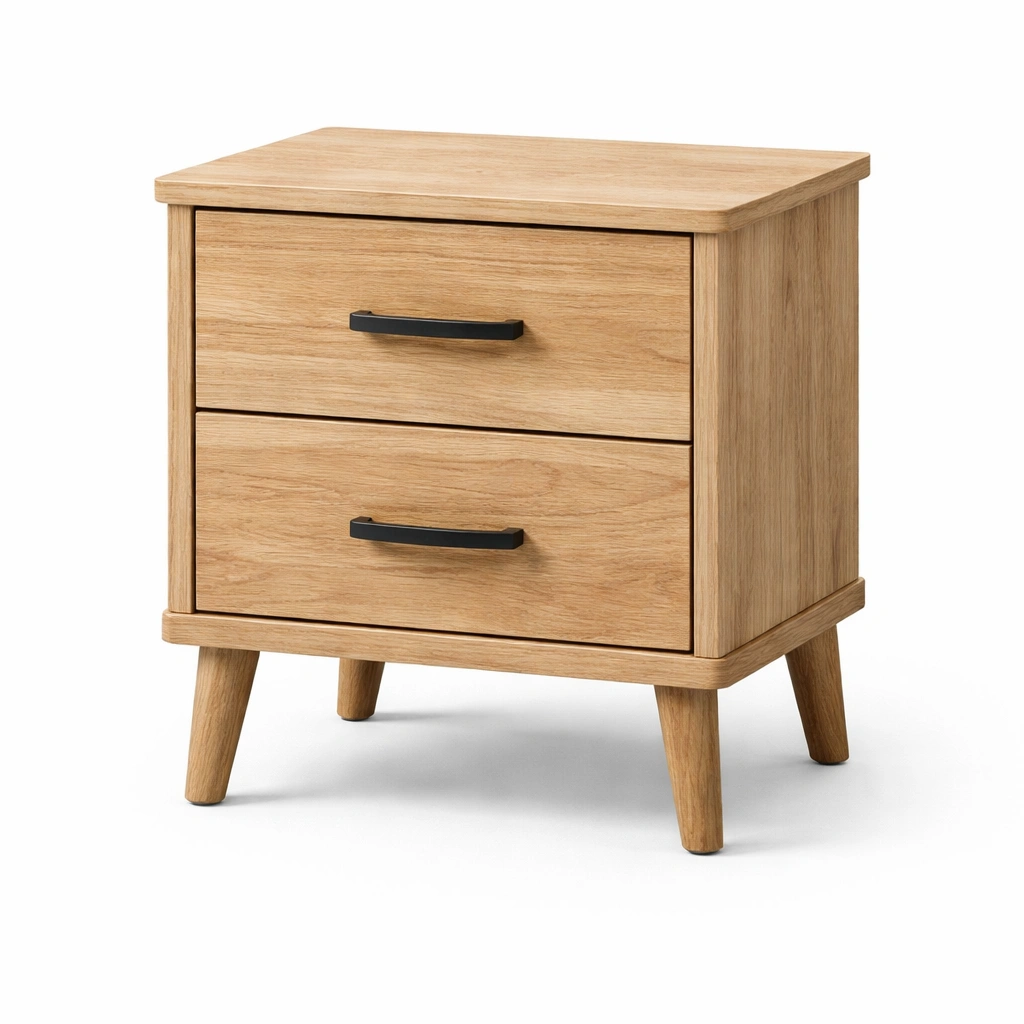 Mesita de noche de madera de roble con 2 cajones