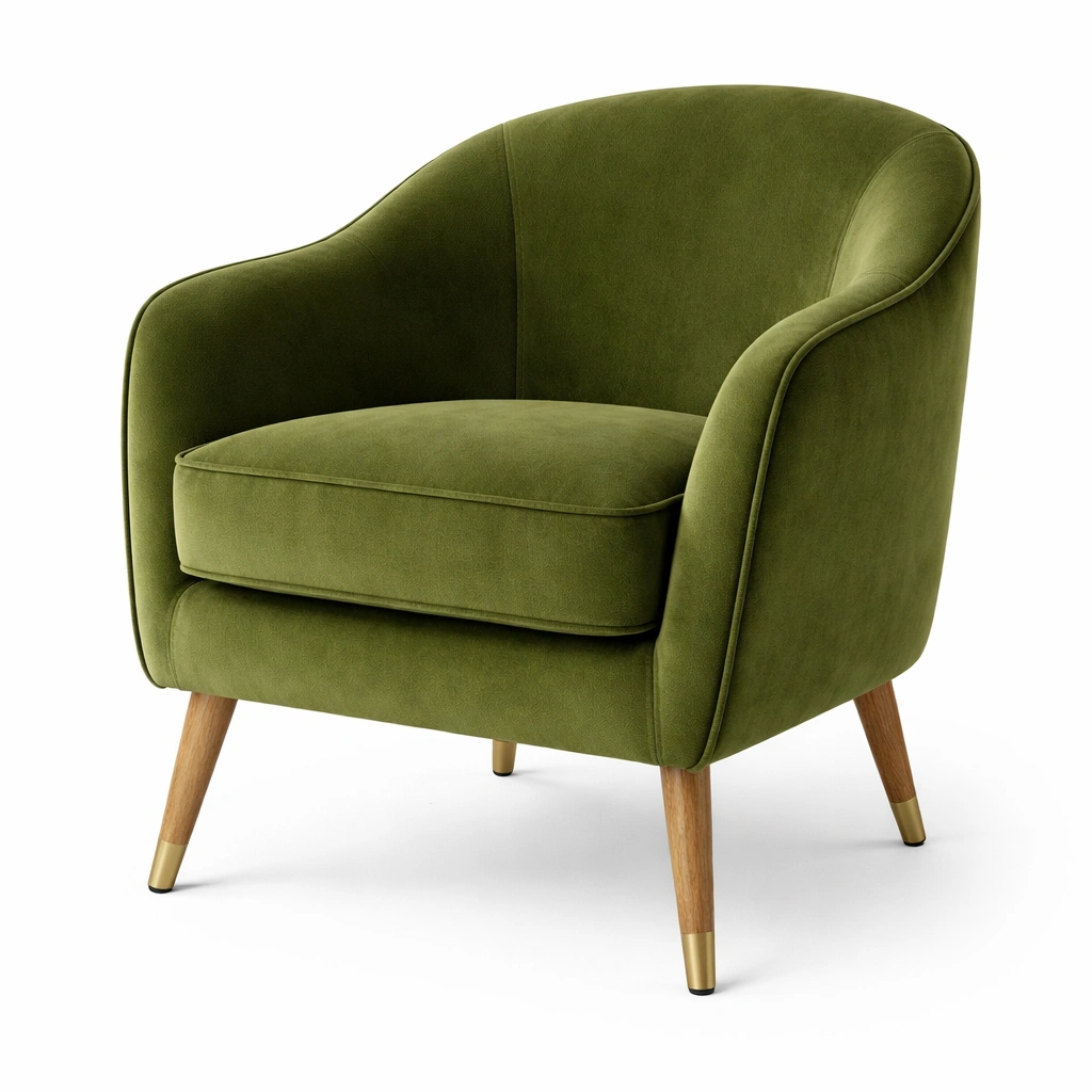 Sillón de tela verde con patas de madera