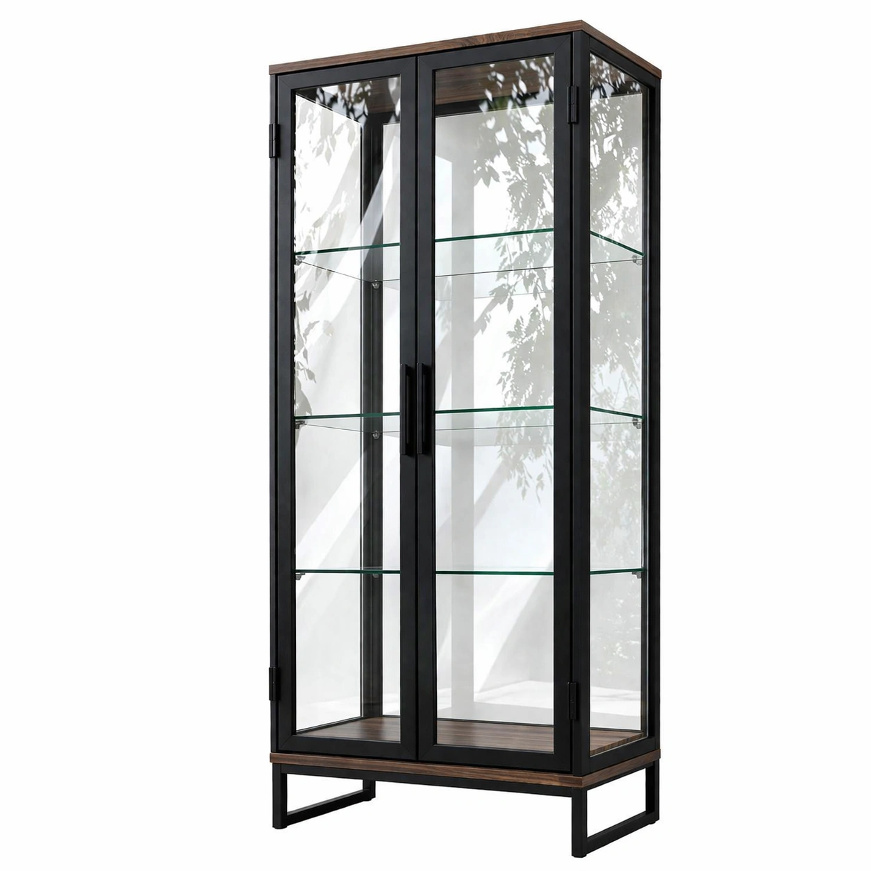 - Diseño de dos puertas con estantes de vidrio ajustables